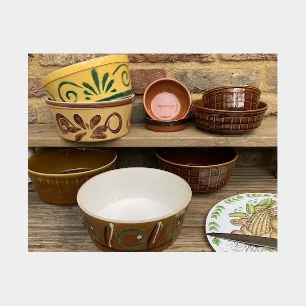 Stoneware and earthenware were typical, often with earthy glazes in browns, creams, and greens, colours very much in keeping with 70s kitchen aesthetics.