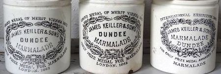 Although the first printed recipe for orange marmalade appears to have been in Mary Kettilby's 1714 cookery book, A Collection of above Three Hundred Receipts, our favourite story is that marmalade was invented in 1700, when a storm-damaged Spanish ship carrying Seville oranges, sought refuge in Dundee harbour. The cargo was sold off cheaply to James Keiller, a down-on-his-luck local merchant, whose wife turned it into a preserve. As fanciful as it sounds, it is a myth which will do very nicely. Nevertheless, what is fact is that the Keillers were the first to establish a marmalade factory in 1797 and their Dundee marmalade in stoneware jars was affordable enough for many families.